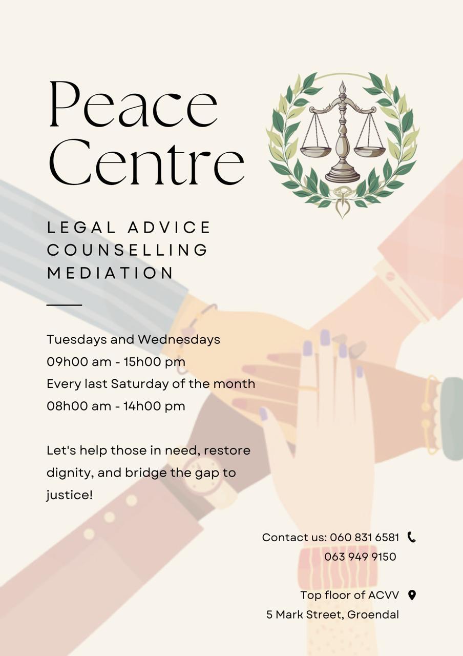 The Peace Centre stands as a steady pillar of support for the Franschhoek community and surrounding areas. We provide reliable legal advice and practical assistance to individuals who cannot afford representation but still deserve justice, dignity, and a fair chance.